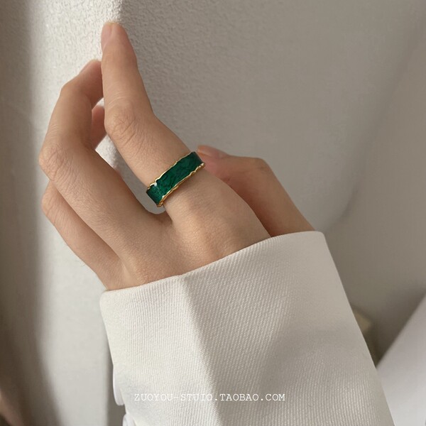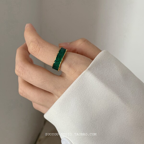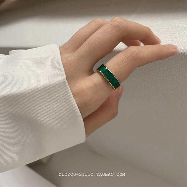 Капельная глазурь зеленый кольцо Женская ниша дизайн мода личность продвинутый чувствовать дикий Палец ретро кольцо