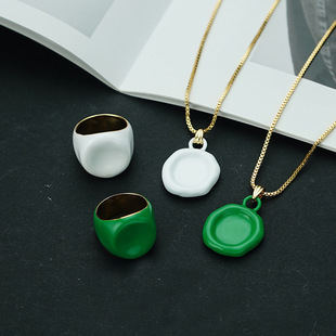 BV жасыл эмаль сақинасы әйел жазғы тренд материалы сән блогері бірдей тұлғалық дизайнмен сұқ саусақ сақина толуыСату көлемі 30 күнге: 533 дана -