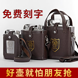 38 унция портативті ашық портативті тот баспайтын болаттан жасалған шарап құмыра 2 мысық шайнек ресейлік шарап жиынтығы CCCP ликер бөтелкесі