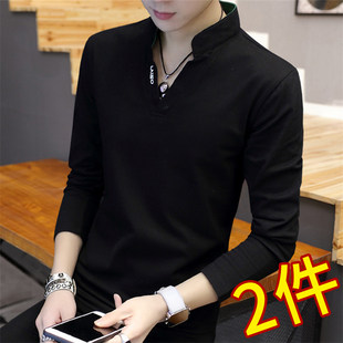 Весенняя футболка, мужская одежда для верхней части тела, лонгслив, толстовка, длинный рукав, в корейском стиле, из хлопка, V-образный вырез