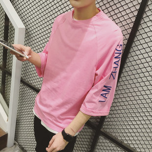 小尼力 Цветная футболка с коротким рукавом, в американском стиле, из хлопка, городской стиль