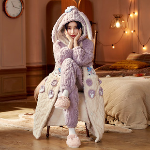 Маржан барқыт деми-маусымдық пижама, жүннен тоқылған фланель күрте, ұзын халат, форма