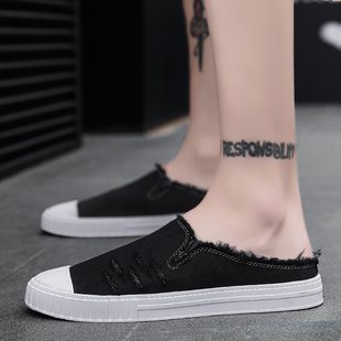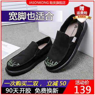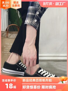 Мужская летняя низкая черная тканевая повседневная обувь, в корейском стиле, большой размер