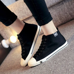 人本 Высокая тканевая спортивная обувь, унисекс тканевые черные кроссовки, в корейском стиле, для отдыха