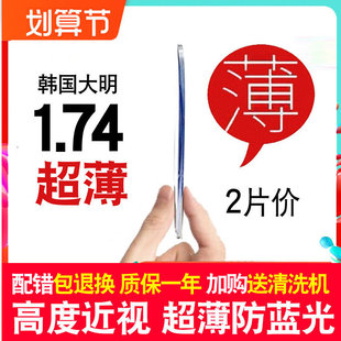 Оңтүстік Кореядан әкелінген Daming 1,74 ультра жұқа линза миопиясы, астигматизм биіктігі 1,67 1 дана су өткізбейтін көк жарыққа қарсы.