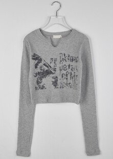 Rumors скорость Корейский поколение Ставка сделать старый английский печать Маленькая u - -форма вырез краткое модель резьба винтов длинный рукав Футболка внешняя торговляОбъем продаж за 30 дней: 0 шт. -