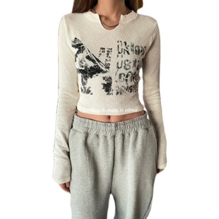Rumors скорость Корейский поколение Ставка сделать старый английский печать Маленькая u - -форма вырез краткое модель резьба винтов длинный рукав Футболка внешняя торговляОбъем продаж за 30 дней: 2155 шт. -