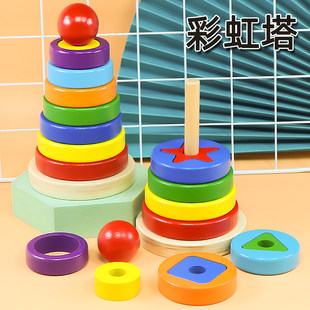 Балаларға арналған білім беру ойыншықтары Ағаштан жасалған бұрылыс музыкасы Кемпірқосақ мұнарасы Жинақтау Музыкасы Ағаш құрылыс блоктары Ерте білім беру сақинасы Баланың шоғырлануы