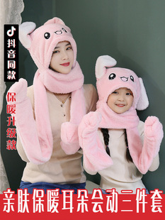 Дуйн бірдей стильдегі қоян құлағы әйелдер күзгі және қысқы торлы қызыл балаларға арналған сүйкімді қалпақ және қысылған кезде қозғалатын шарфСату көлемі 30 күнге: 6633 дана -