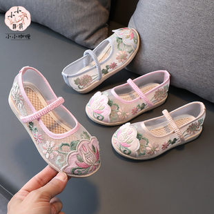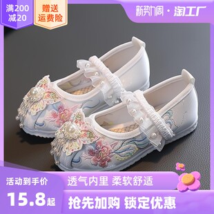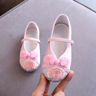 Тканевая обувь для прицессы, мягкое ханьфу, для девочки, китайский стиль, мягкая подошва