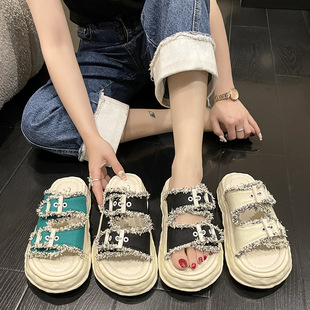 Тапочки, обувь, пляжные слайдеры на платформе, коллекция 2023, в корейском стилеОбъем продаж за 30 дней: 223546 шт.