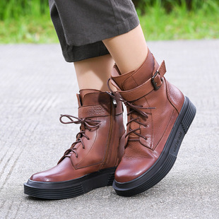Демисезонная обувь, ботинки на платформе в английском стиле, из натуральной кожи, новинка, для отдыхаОбъем продаж за 30 дней: 4 шт.–40% -