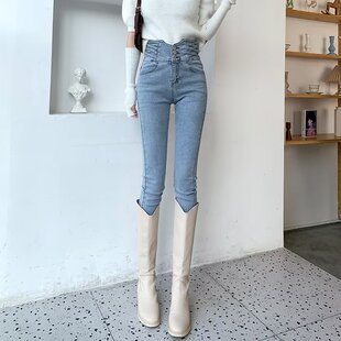 Джинсы, демисезонные штаны, приталенный карандаш, ботинки, в обтяжку, новая коллекция, высокая талияОбъем продаж за 30 дней: 21 шт. -