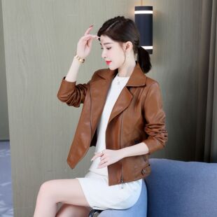 203 Осень мисс новый локомотив Кожа куртка краткое модель пределами набор отворот овец кожи натуральная кожа среднего возраста мисс тонкийОбъем продаж за 30 дней: 138 шт. -