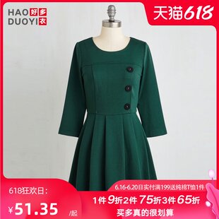 Haoduoyi Ретро жасыл көйлек, белі жоғары, А-сызығыСату көлемі 30 күнге: 2 данаРейтинг